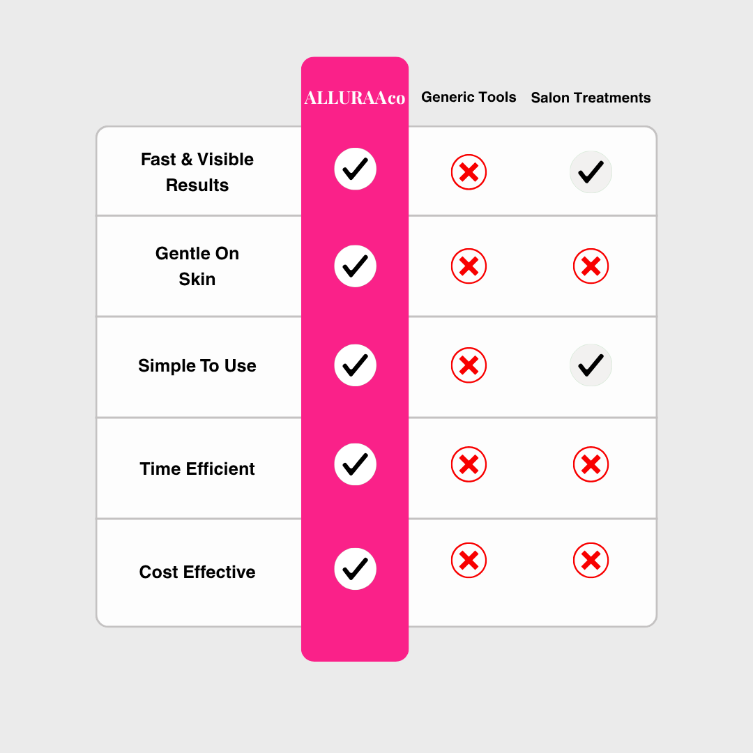 Tired of slow results or expensive appointments? Alluraa brings the power to you — in minutes. With premium materials, effortless ergonomics and stunning design, your skin will feel renewed, radiant and ready for anything.